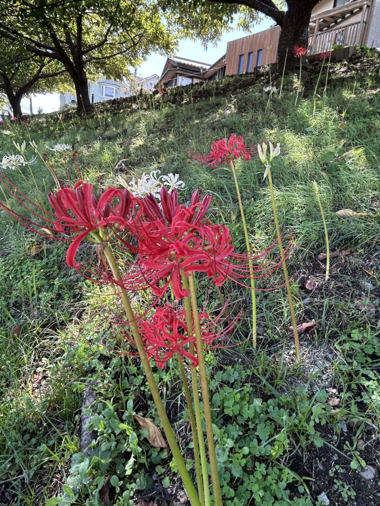 彼岸花が数日前から咲き始めました。開花している花はまだ少ないですが、日に日に土の中から芽が出てきました。